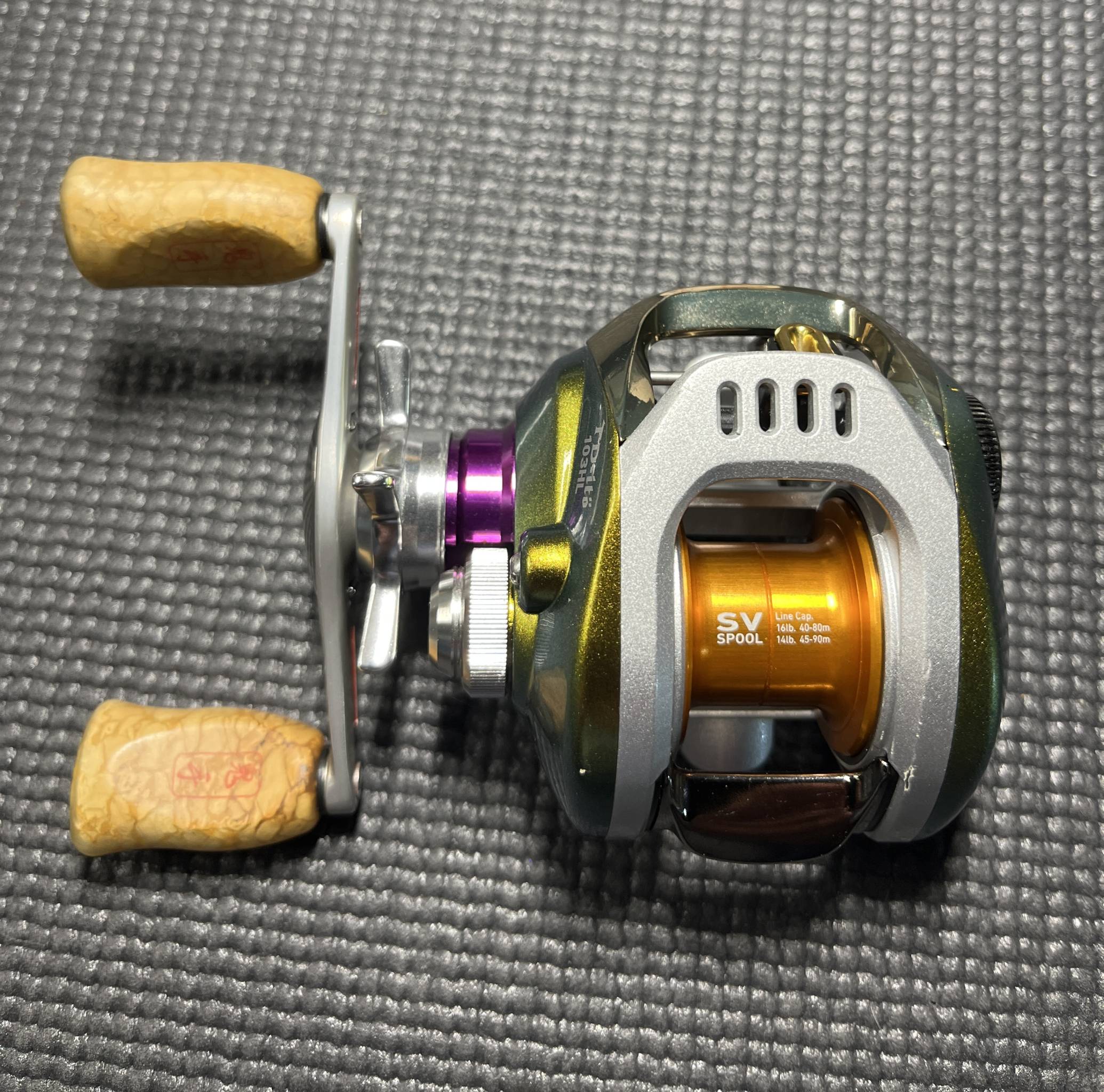 Hello, I am selling this wonderful Daiwa TD-Ito 103HL reel. This reel is in great condition, minor scuff marks on the surface (shown in photos). Time for me to simply thin out the herd and share this reel with a new owner. The reel has not been used since a complete cleaning/bearing upgrade job by Ian. Current spool is an SV spool (shown in photos). Looking to get $400 shipped to your door. Please USA delivery only. Additional photos can be sent upon request.