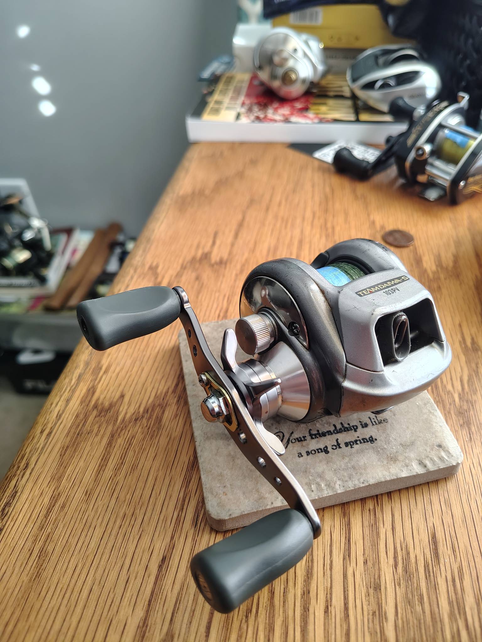 Frankenstein-ed an OG TD-S 103PV that still has buttery smooth 5.1:1 gears, with parts from one of my TDX HSDF reels. Then completed a full clean, lube, and polish. Gonna be a great big spinnerbait slow-roll reel, and especially big single Colorado blades spinnerbaits at night, as well as 15+ deep cranks in that 3/4 oz range. IPT conversion works out to be about 21, so still very usable...it's gonna be very nostalgic when cranking in lures, very akin to one of my first TDZs, a 103P 5.1:1.